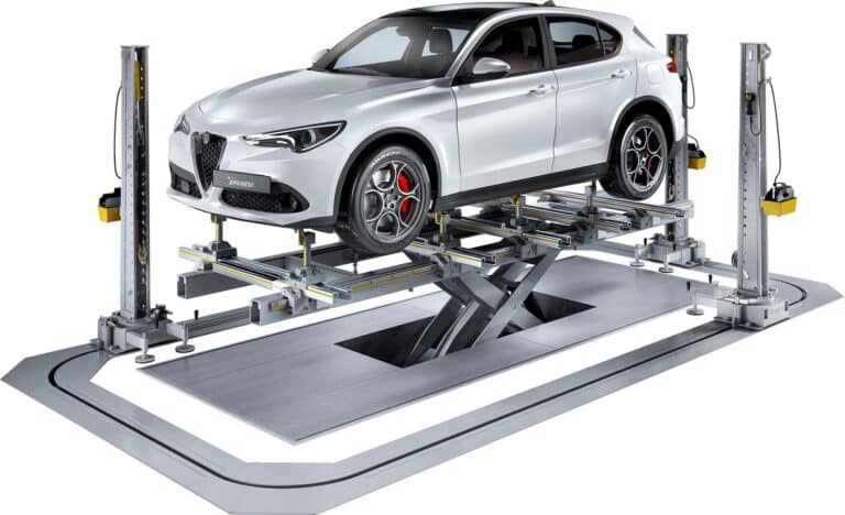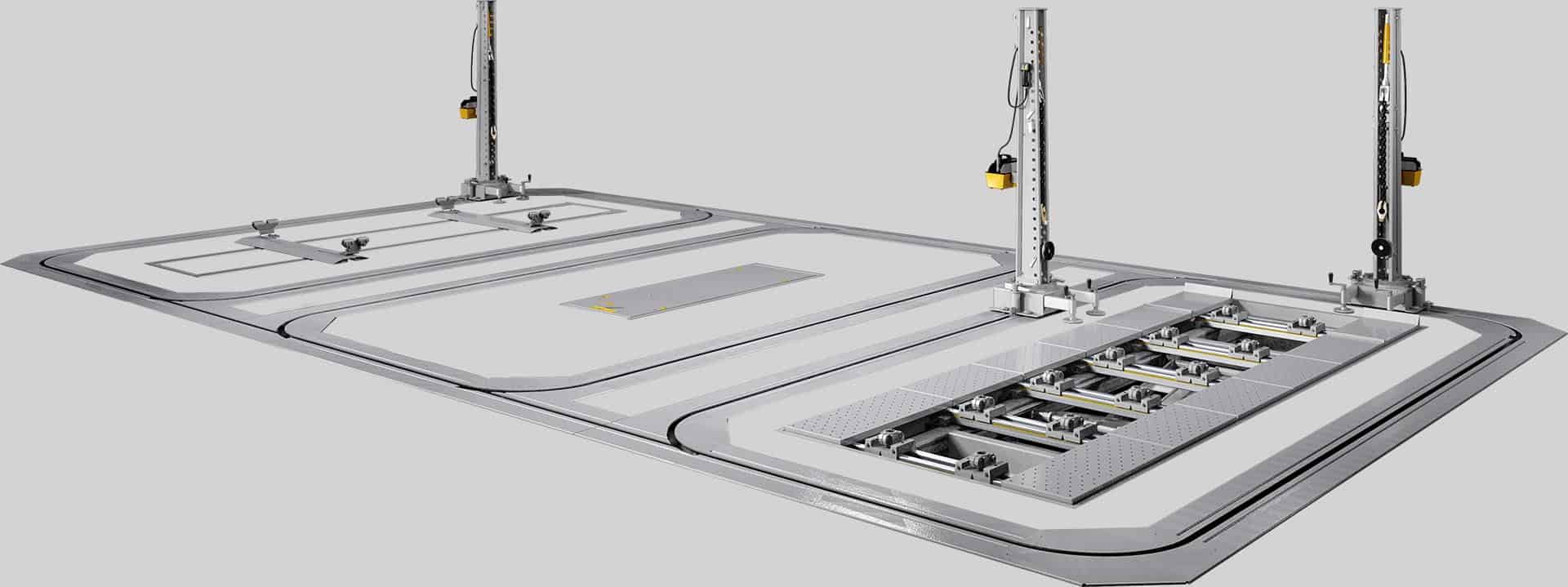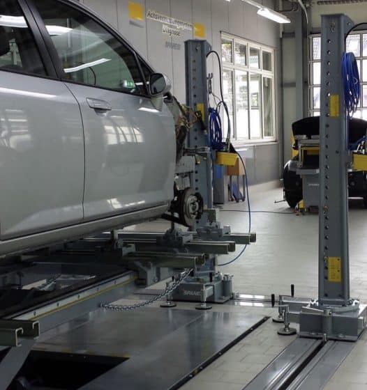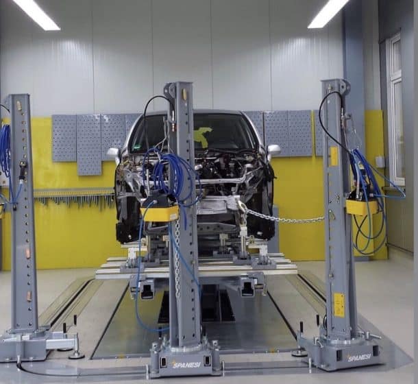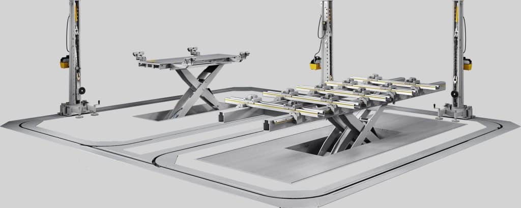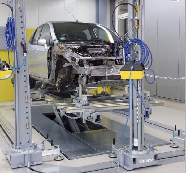 Le Daytona est un poste de travail particulier conçu pour réparer tout choc à n’importe quel véhicule. Il est composé d’un ou plusieurs anneaux sur lesquels glissent des équerres de tirage spéciaux: cela permet de faire plusieurs tirs en même temps et de déplacer les équerres de tirage d’un endroit à un autre.