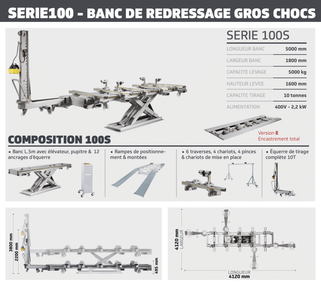 - Permet de positionner, remplacer ou souder un élément mais le « SERIE100 » permet également de contrebrider et mesurer vos véhicules accidentés.