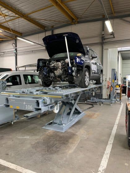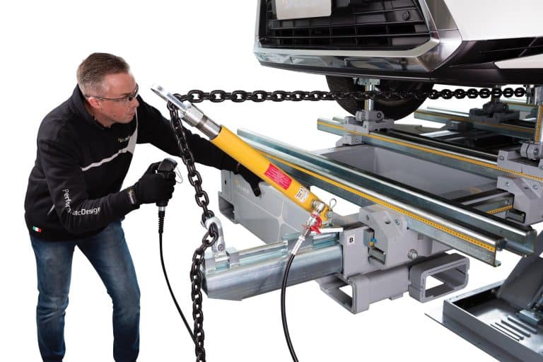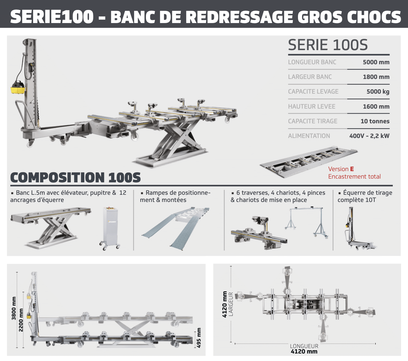 Le banc de redressage « SERIE100 » est équipé d’une colonne de tirage de 10 tonnes avec 12 points d’ancrages sur son châssis afin de permettre l’accès à toutes les zones du véhicule