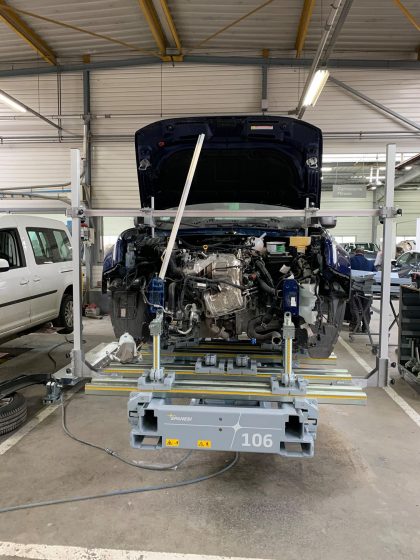 - Grâce aux gabarits universels tri-dimensionnel Spanesi, bridez solidement les véhicules sur 4 points pour tirer et maintenez les éléments en place en phase de remplacement.